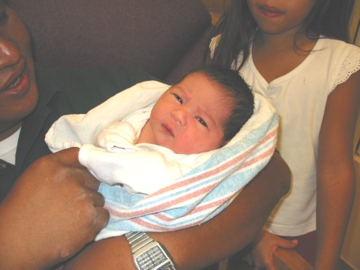 Priscilla started to have some spotting on Thursday morning. We went in to Dr Donnelly's office and everything was "NORMAL". Call me a guy, but I will never believe blood oozing from the body is "NORMAL". Anyway, Priscilla was having small contractions all day. We were told this was again normal. I went in to work that night,and got a call at 9pm. It was Priscilla and she was pretty frantic. She said that her water had broke. Being the calm man I am, I knew just what to do. I used my best Barry White voice and said "just take it easy baby, Daddy is on the way". I called the hospital and our next door neighbor. Our neighbor, Teresa is a superstar. She went over to comfort Priscilla. I shot straight home. I drove like a professional Formula one driver. I arrived home about 15 minutes later. I found Bill (superstar #2 and Teresa's husband) in the driveway. He had Miranda on one arm, and Isabella on the other.He said he sent the ladies to the hospital and I should go. I made sure they were all set, and then I was off to the hospital. THANK YOU BILL AND TERESA